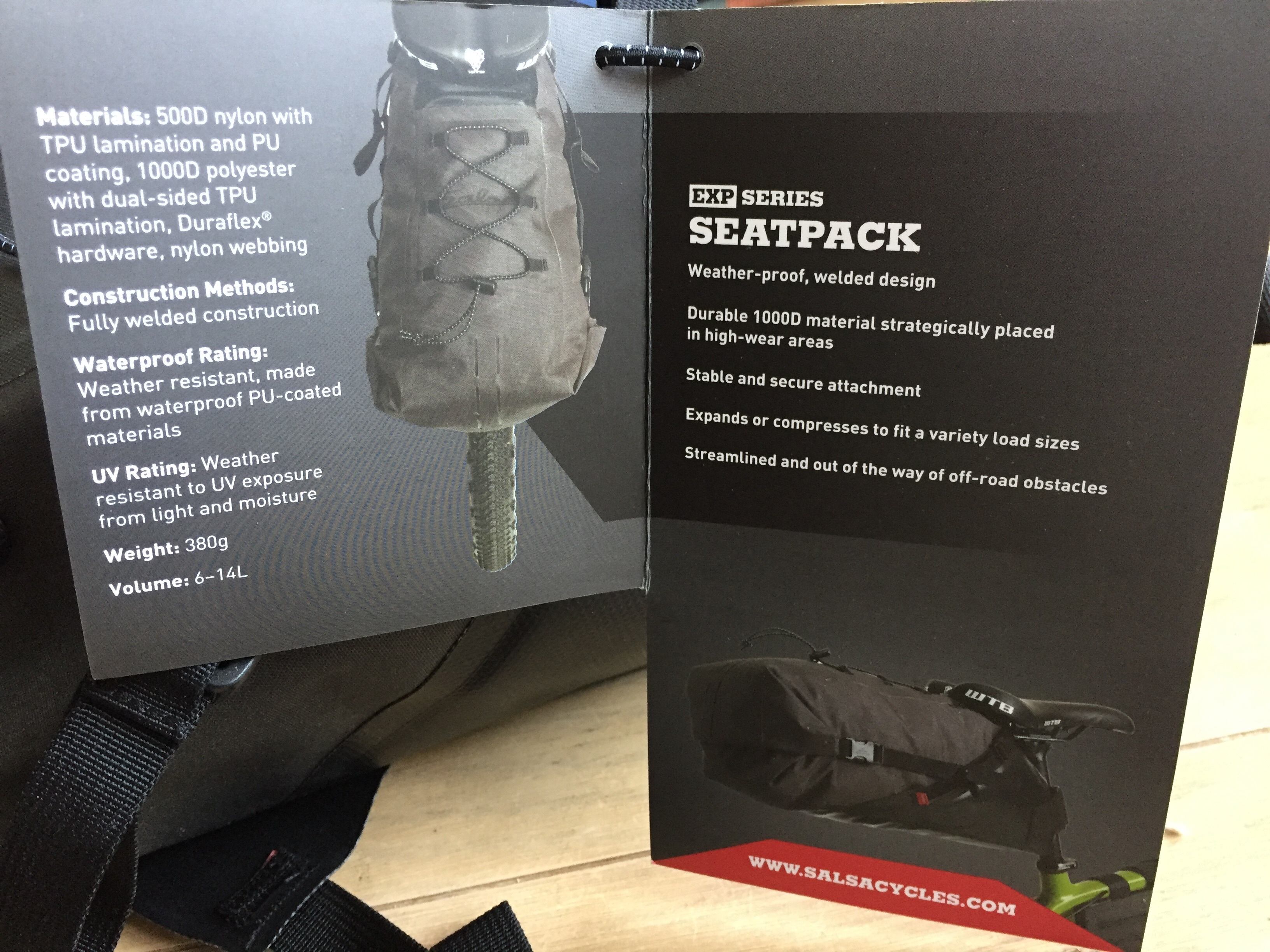 アドベンチャーライドが得意なSalsaの耐久性、耐候性、防水性、密閉性の高いシートパックです。内容量6-14l Ortliebと同等なタフさを持っています。ツーリングに最適です。